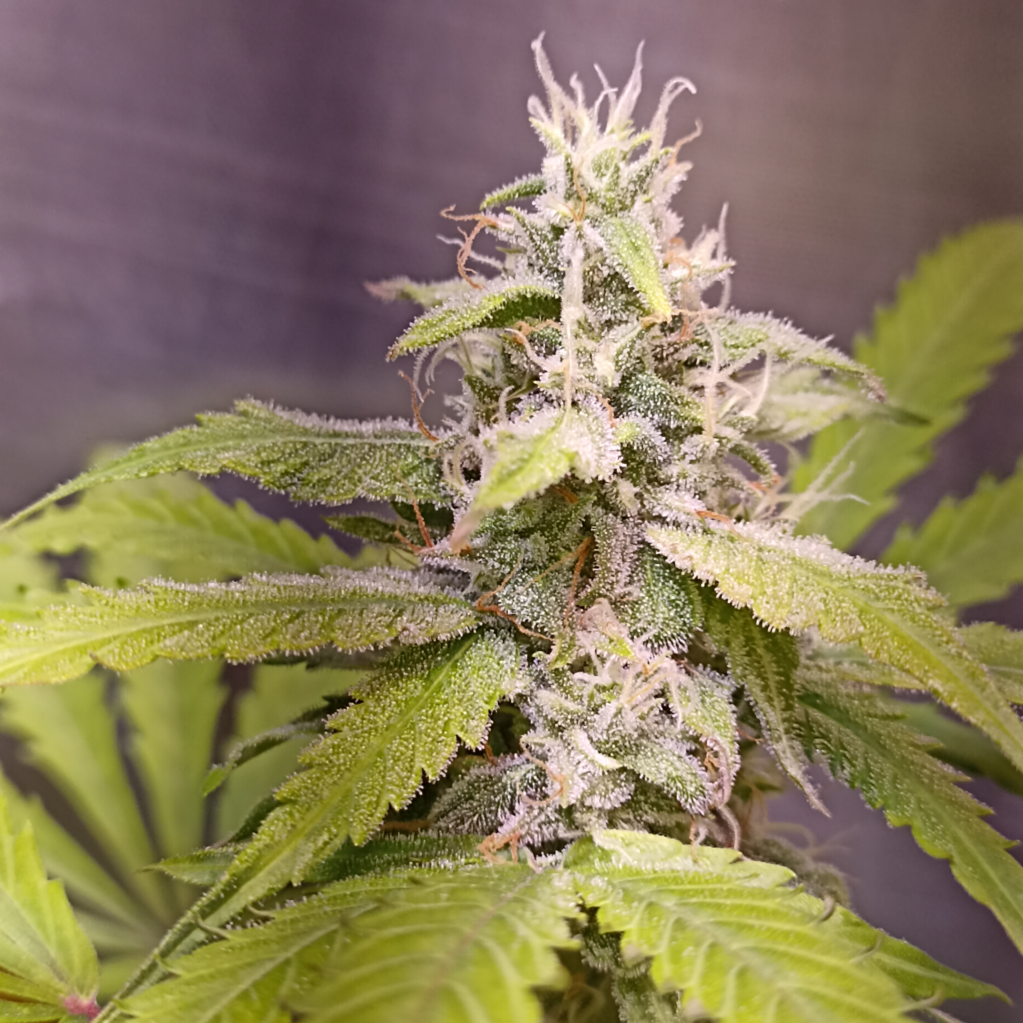 Трихом столько было, что теперь понятно почему белая. Попробовала наконец эту вдовушка. Хороший эффект, тянет поболтать и смеяться без опьяняющего эффекта. Хорошая, забористая. Понравилась именно своим сбалансированным эффектом. Очень неприхотливая, простила даже плохое кормление. Выросла в метровую красотку.
