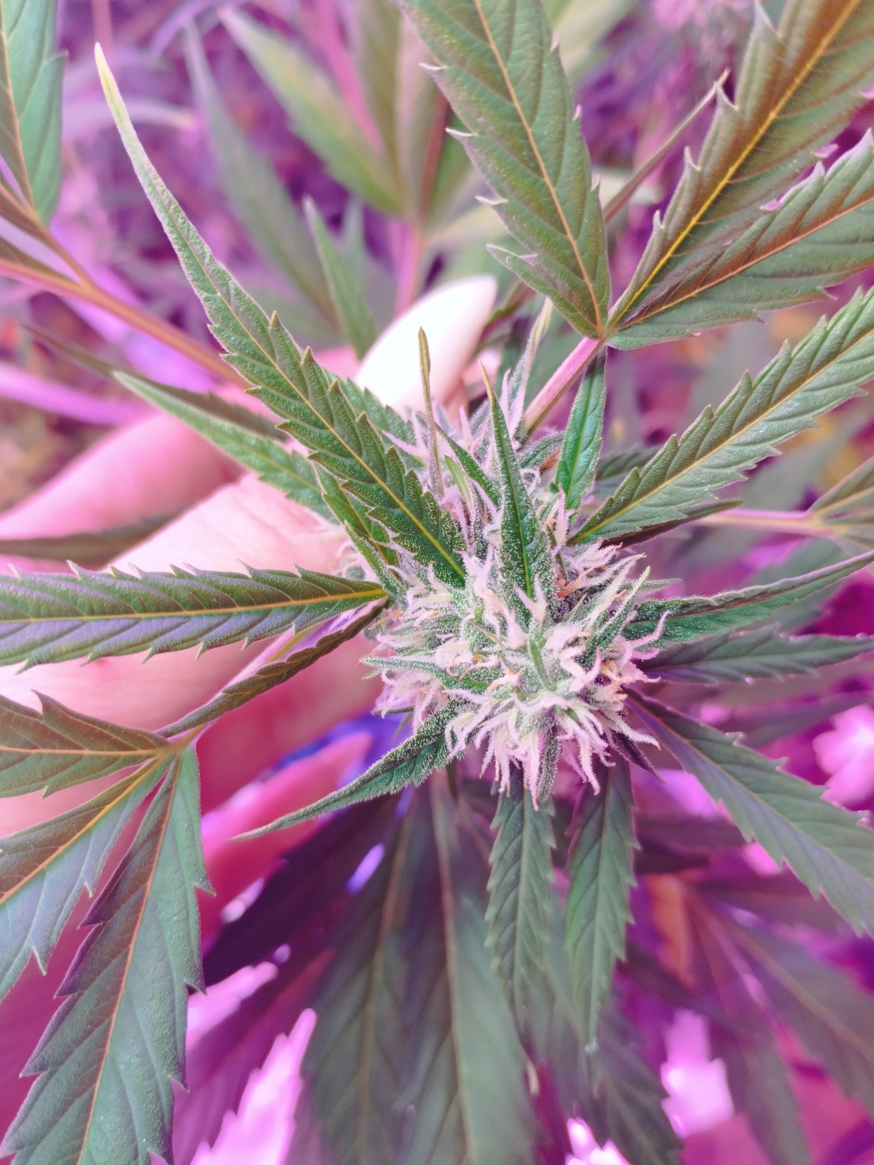 В генетике преобладает индика. хотя некоторые растения могут проявить сативные гены и вытянуться до 150см в высоту.У нас в ауте на середине цвета захотела стать фиолетовой вдовой. и стала.В конце харва непередаваемо красивые фиолетово-розовые цветы убойного качества. Урожайность соответствует заявленной.