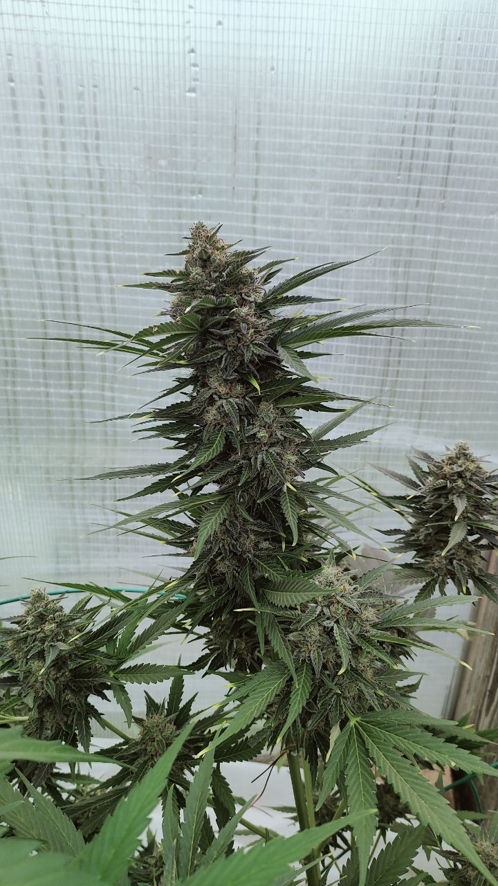 Один из моих любимых автиков. Живучий, скосил куст, случайно оторвал центральную колу, оставив первые 4 побега. Но горила справилась, дала еще 22 небольших побега и по итогу вымыхала в такой пышный куст, что если бы случайно не резанул то урожай был бы мега большим, но и так дала большем чем любой другой автоцвет) На счёт эффекта, более мощного пока еще ничего не курил, давал пробовать своим, все присели с колпака)))