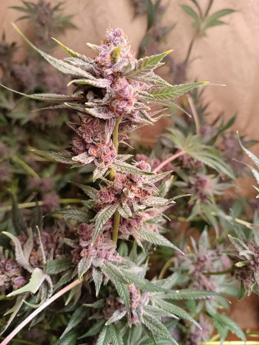 Эффект отменный. Слегка передержал (95 дней) - полчаса медленно накатывает, полчаса мощное, яркое и теплое расслабление, затем здоровый, спокойный сон. Принимать, на мой взгляд, исключительно если не планируется никаких дел. Куст небольшой, не энергичный, динамика роста на впечатляла. Пьет медленно, поэтому если растить в компании с другими поливать придется его отдельно. Цвет поменял очень выборочно, синим он не стал, хотя лёд я использовал.